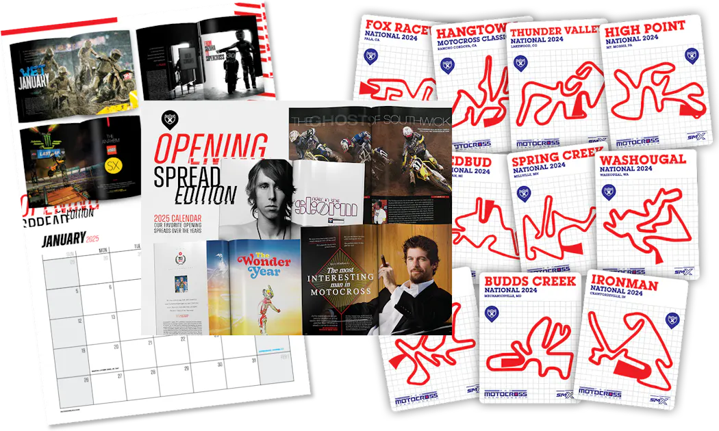 * Our 2025 Racer X calendar showcasing our favorite opening spreads of all time.